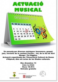 Un passeig per diverses músiques: bossanova, gospel, jazz, versions de la cantant Cecilia... tot, de la mà de Xavi Monge i Tui Higgins.