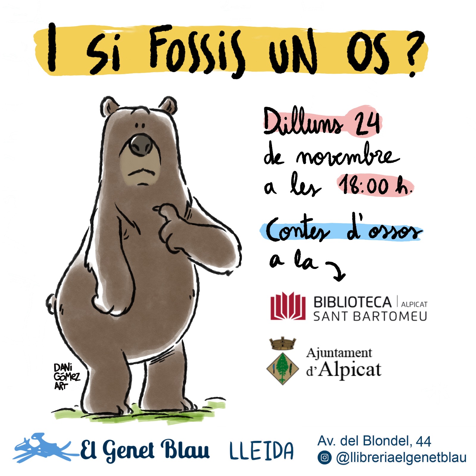Oferim una hora del conte mensual, amb les noies d'El Genet Blau: 27 d'octubre, 24 de novembre i 15 de desembre, a les 6 de la tarda.