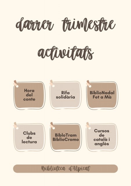 Un cop finalitzades les vacances d'estiu, amb el curs començat i en plena tardor, la biblioteca torna a programar les hores del conte, els cursos d'idiomes, els clubs de lectura i el concurs de Nadal. També és el moment de posar en marxa la rifa solidària per La Marató 3cat, amb el propòsit de recaptar 1000€ per la investigació del càncer.